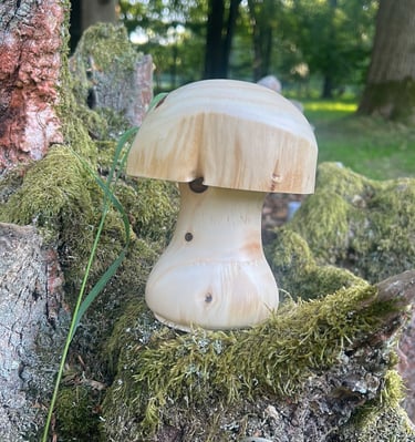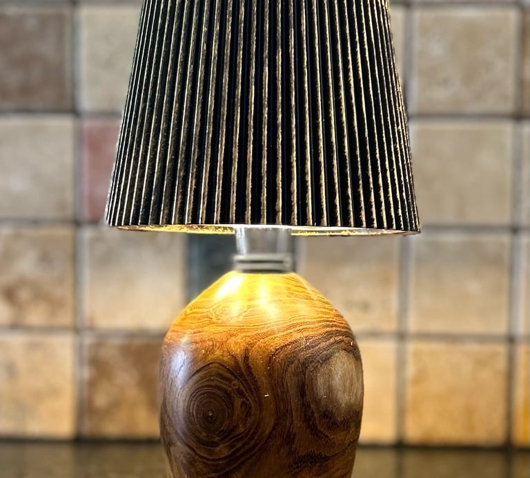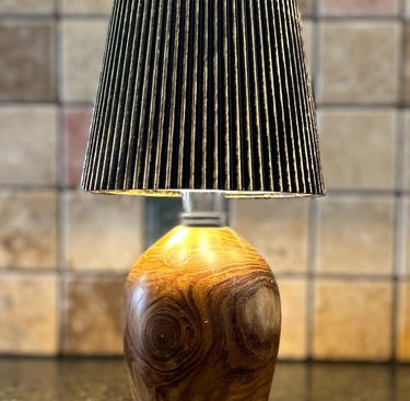 Adaptation of the rechargeable bottle lamp… a beautiful turned base instead.